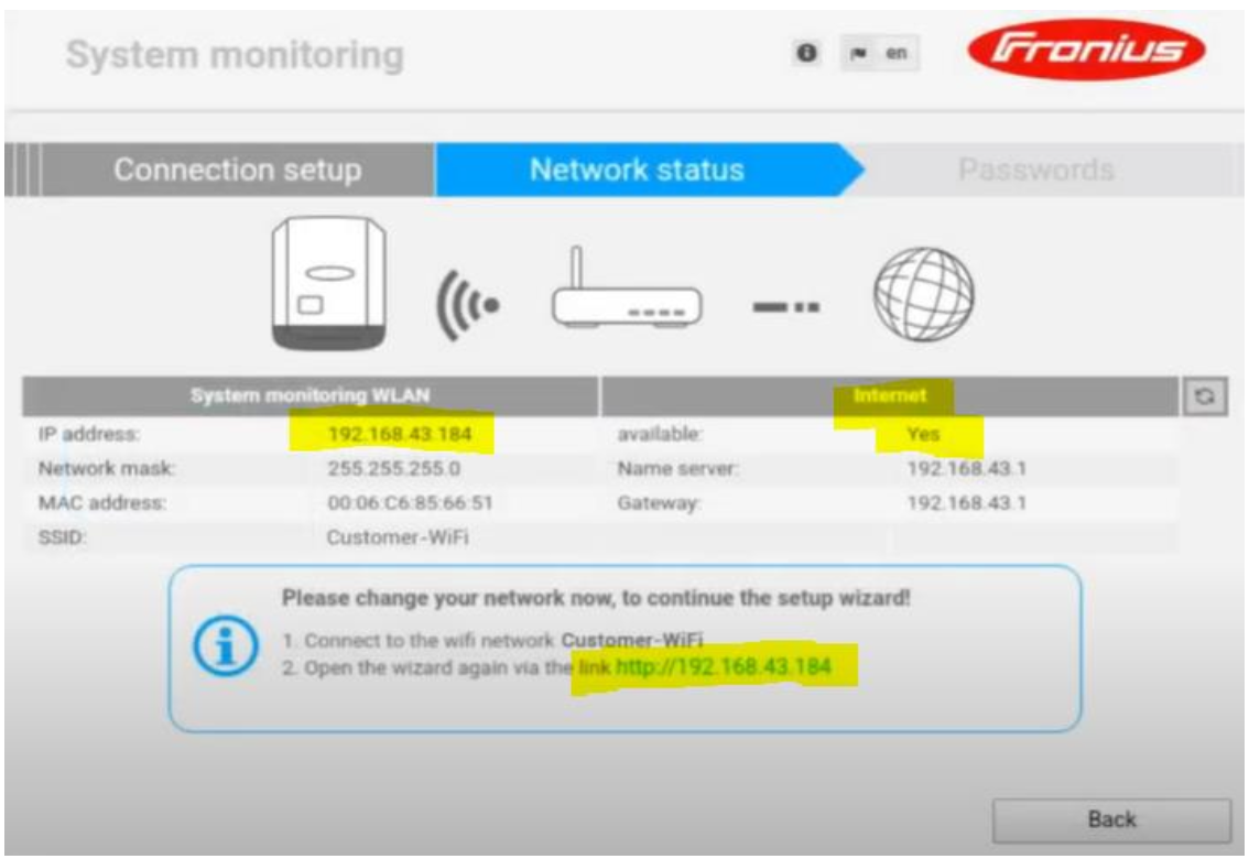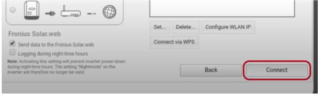 Maak connectie met deze Fronius SIDD en wachtwoord is 12345678.