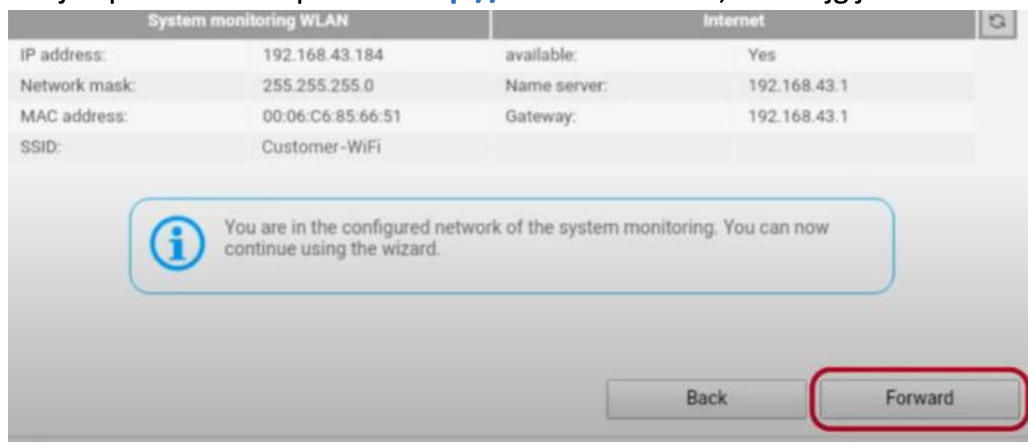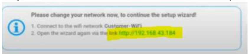 Wanneer je connectie hebt met het Wifi netwerk van de klant ga je terug naar het scherm van zojuist en klik je op het blauwe ip adres: http:// 192.168.43.184, dan krijg je onderstaande scherm, dan ‘ Forward’.