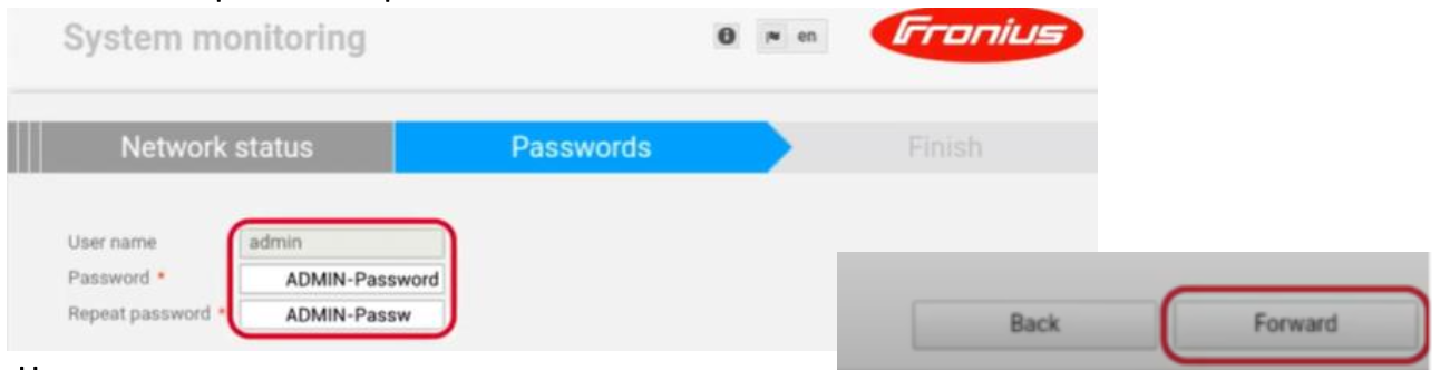 Geef hier een password op voor admin. En ‘ Forward ‘